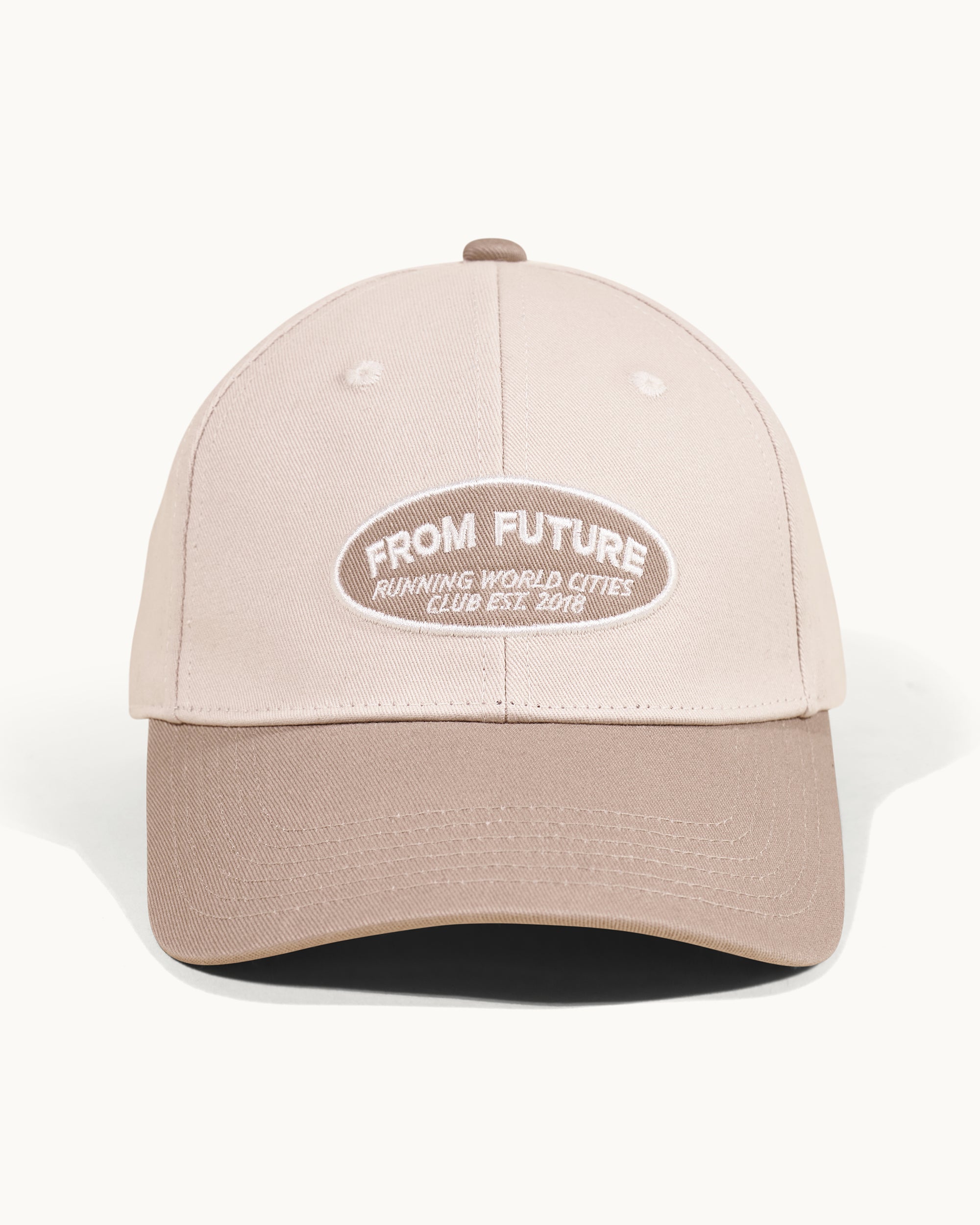 A touch of vintage with soft hues. This cotton cap is adorned with an embroidered “From Future” badge and a contrasting curved brim.