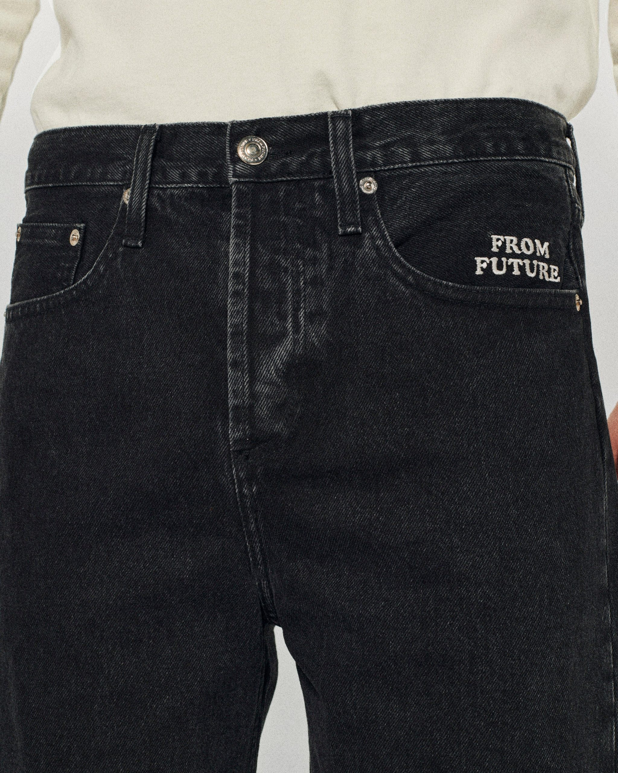 FROM FUTURE jeans are made from recycled cotton from industrial fabric scraps (75% cotton, 25% recycled cotton). The colors have been worked with care thanks to the eco wash system: an ecological washing process that drastically reduces the consumption of water, energy and chemical products.