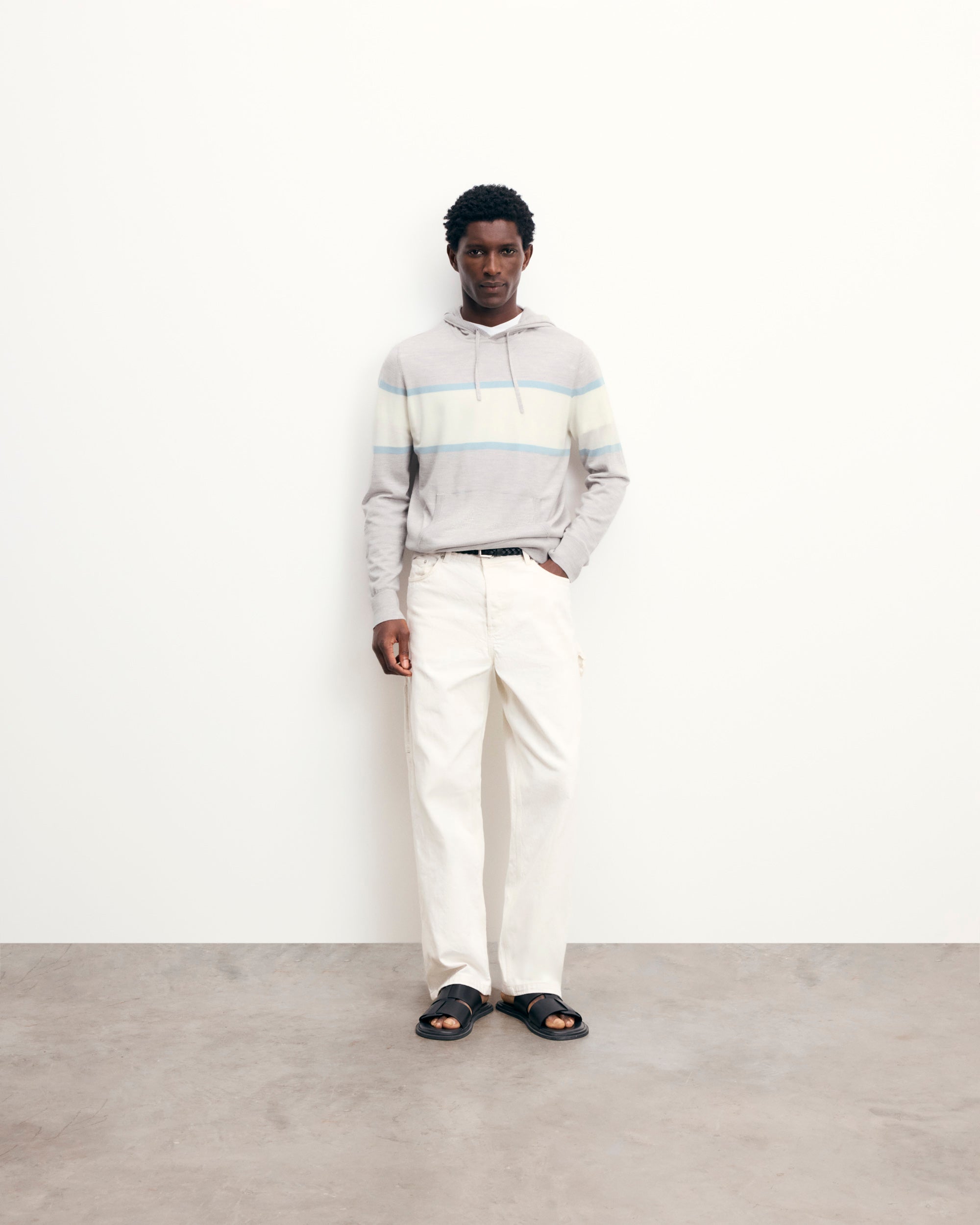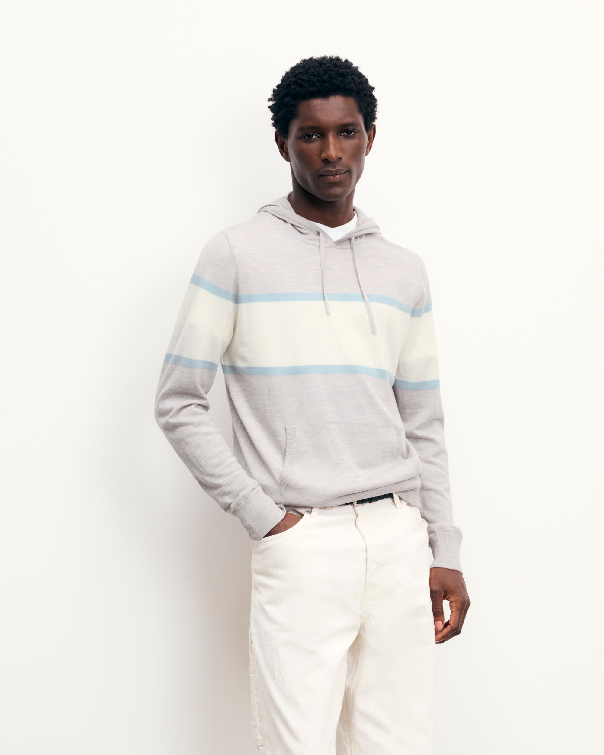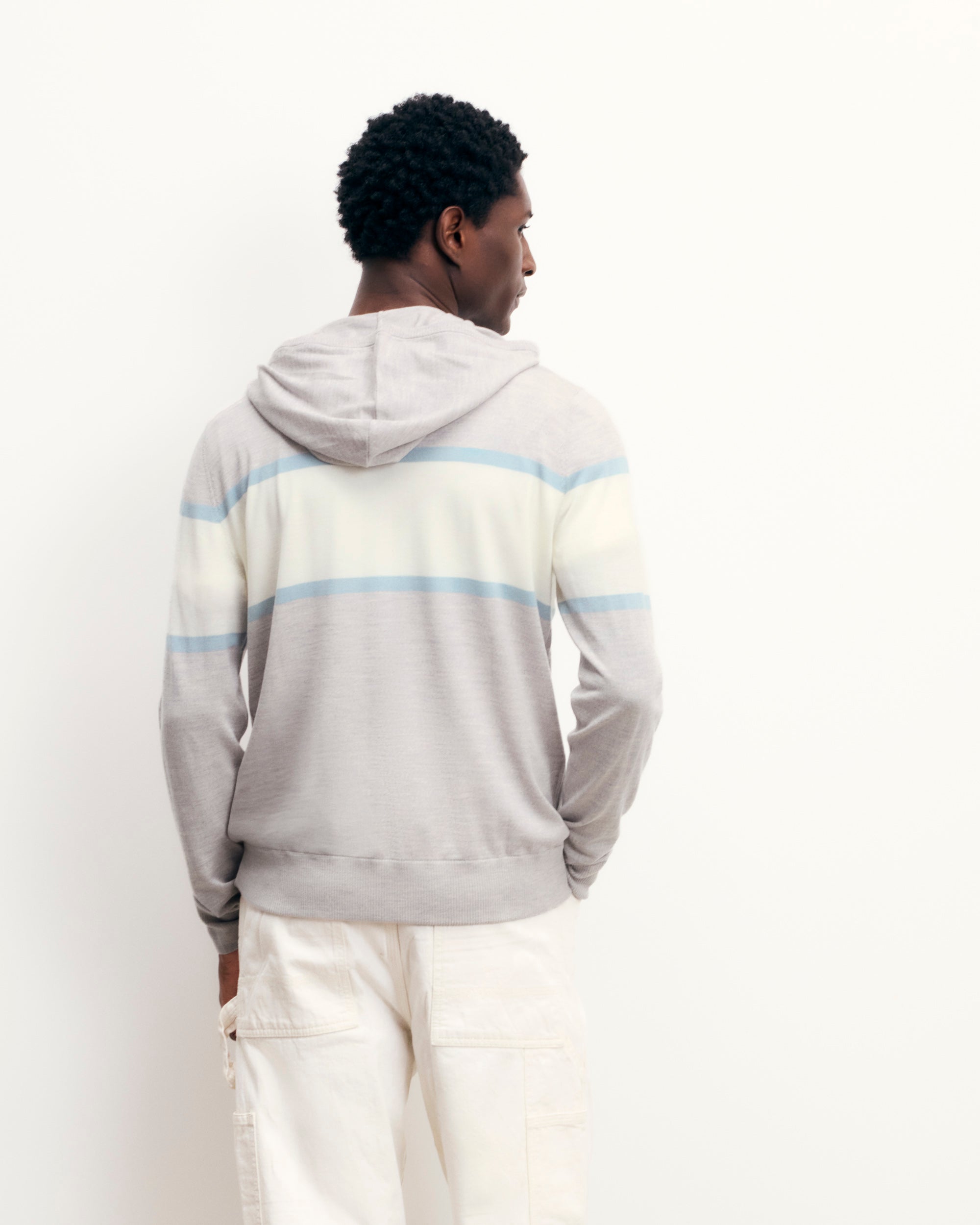 100% merino wool.Merino wool has the particularity of being temperature regulating. It is therefore ideal for wearing next to the skin in spring and summer.Hand washingFabric softener and bleaching prohibitedDo not tumble dryDry cleaning prohibitedIron at low temperature