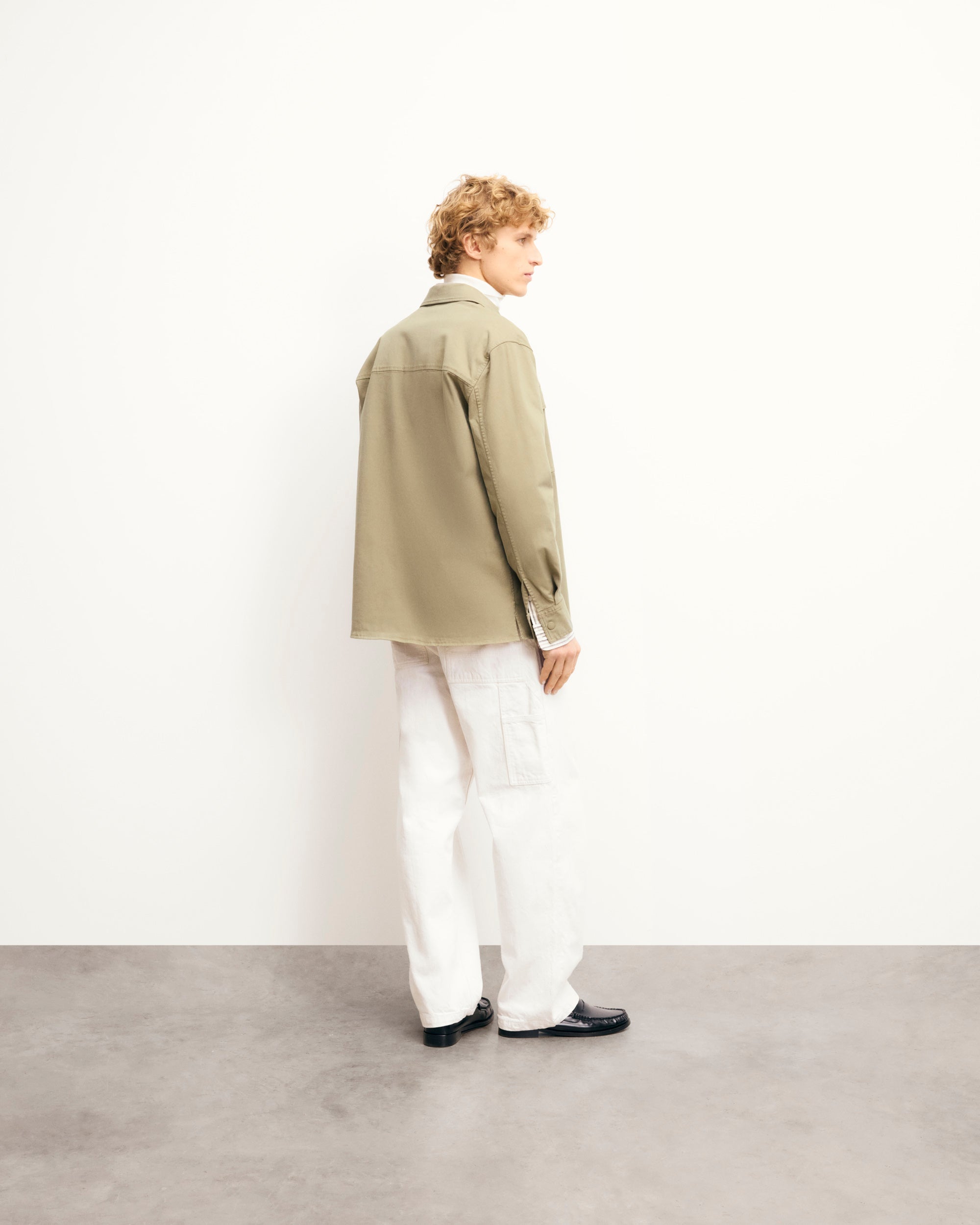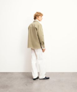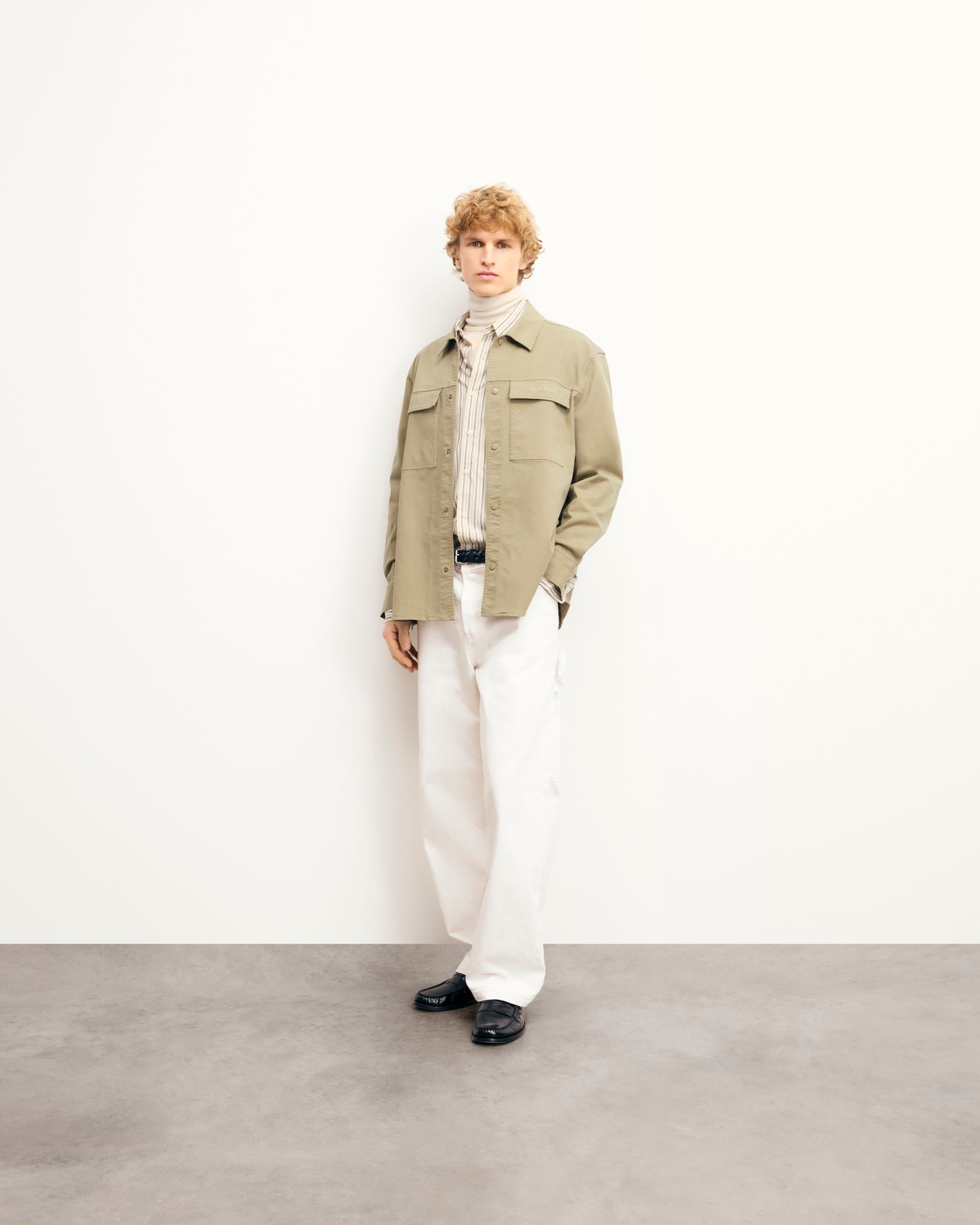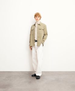 This jacket exudes timeless elegance with its clean lines and tailored fit. With a shirt neck, snap buttons, and welt chest pockets, it’s a versatile piece for any wardrobe.