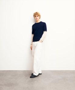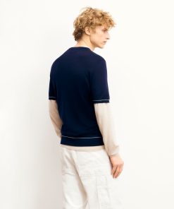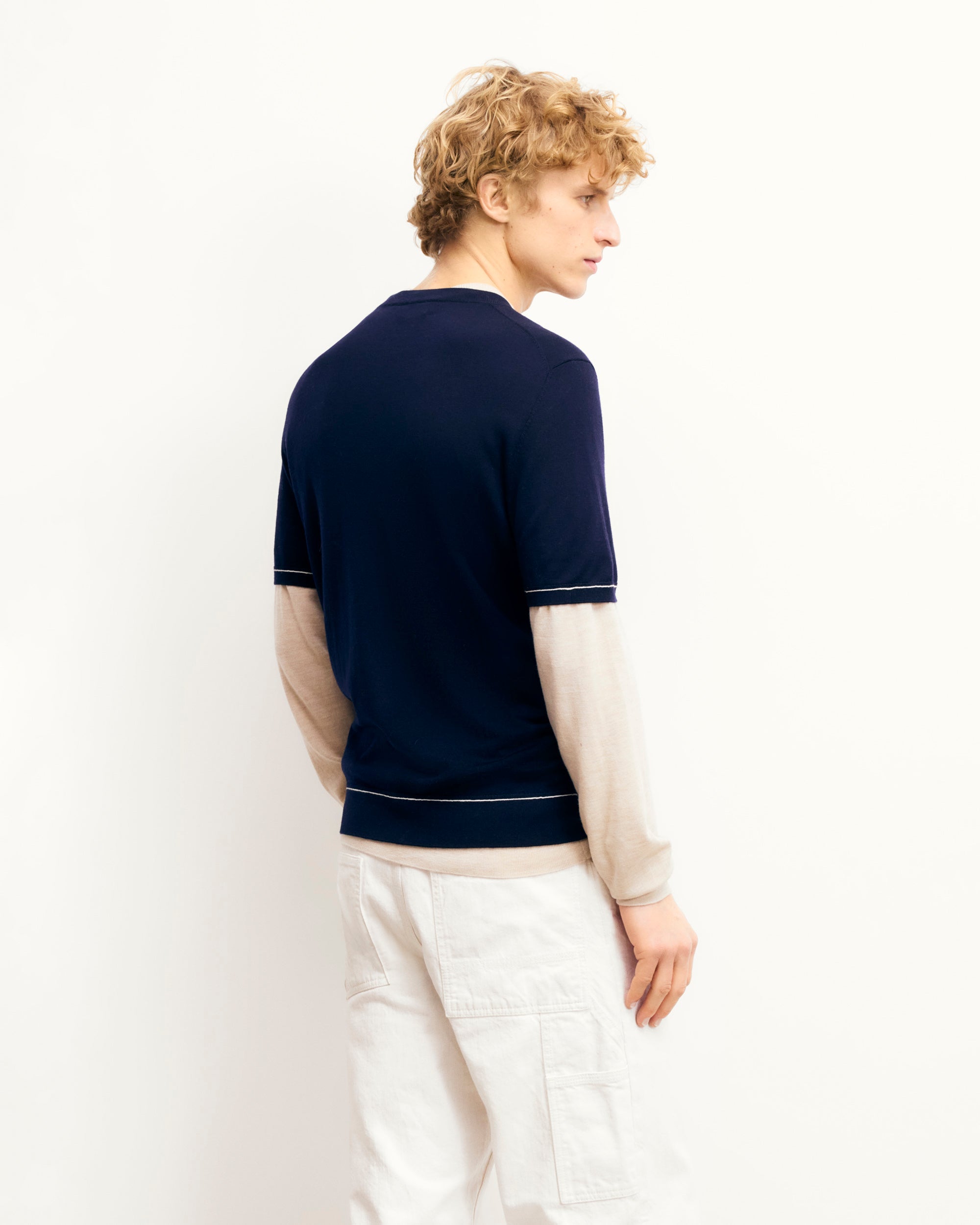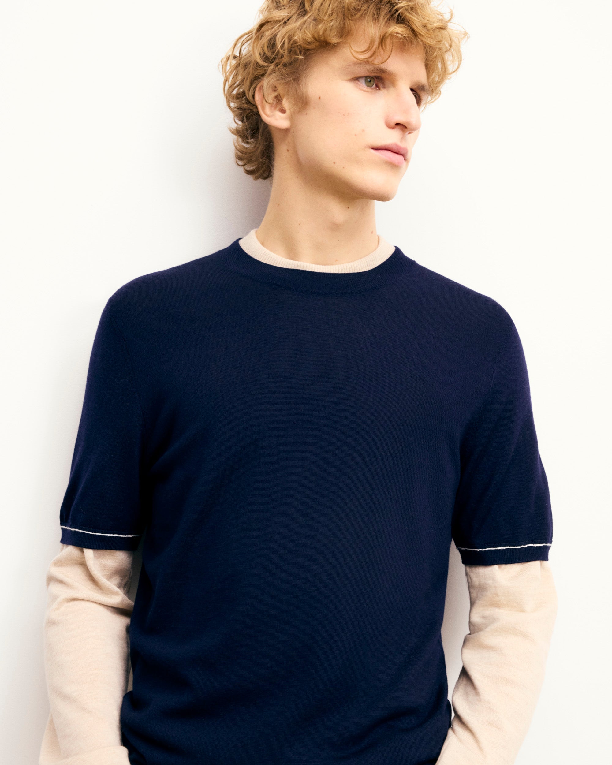 100% merino wool.Merino wool has the particularity of being temperature regulating. It is therefore ideal for wearing next to the skin in spring and summer.Hand washingFabric softener and bleaching prohibitedDo not tumble dryDry cleaning prohibitedIron at low temperature