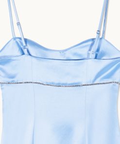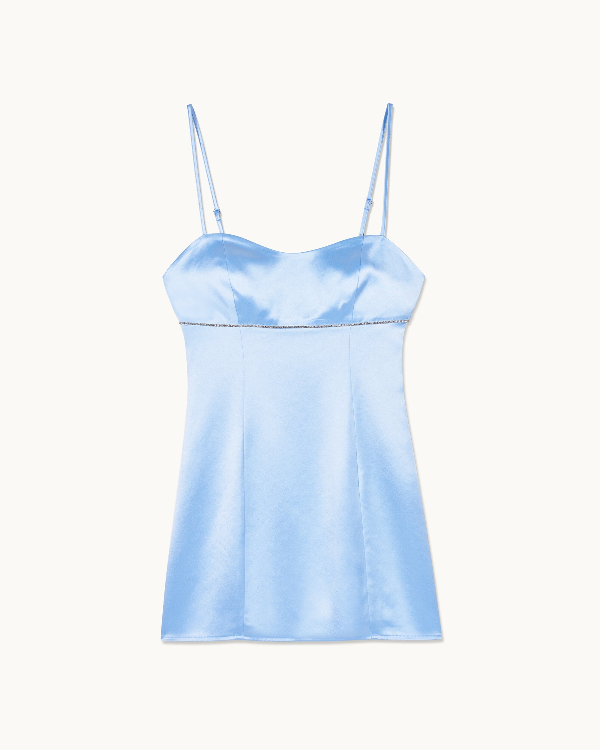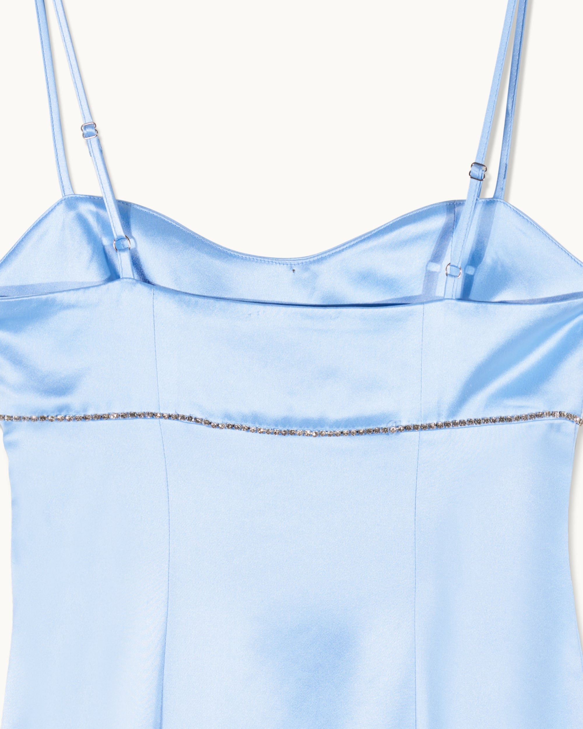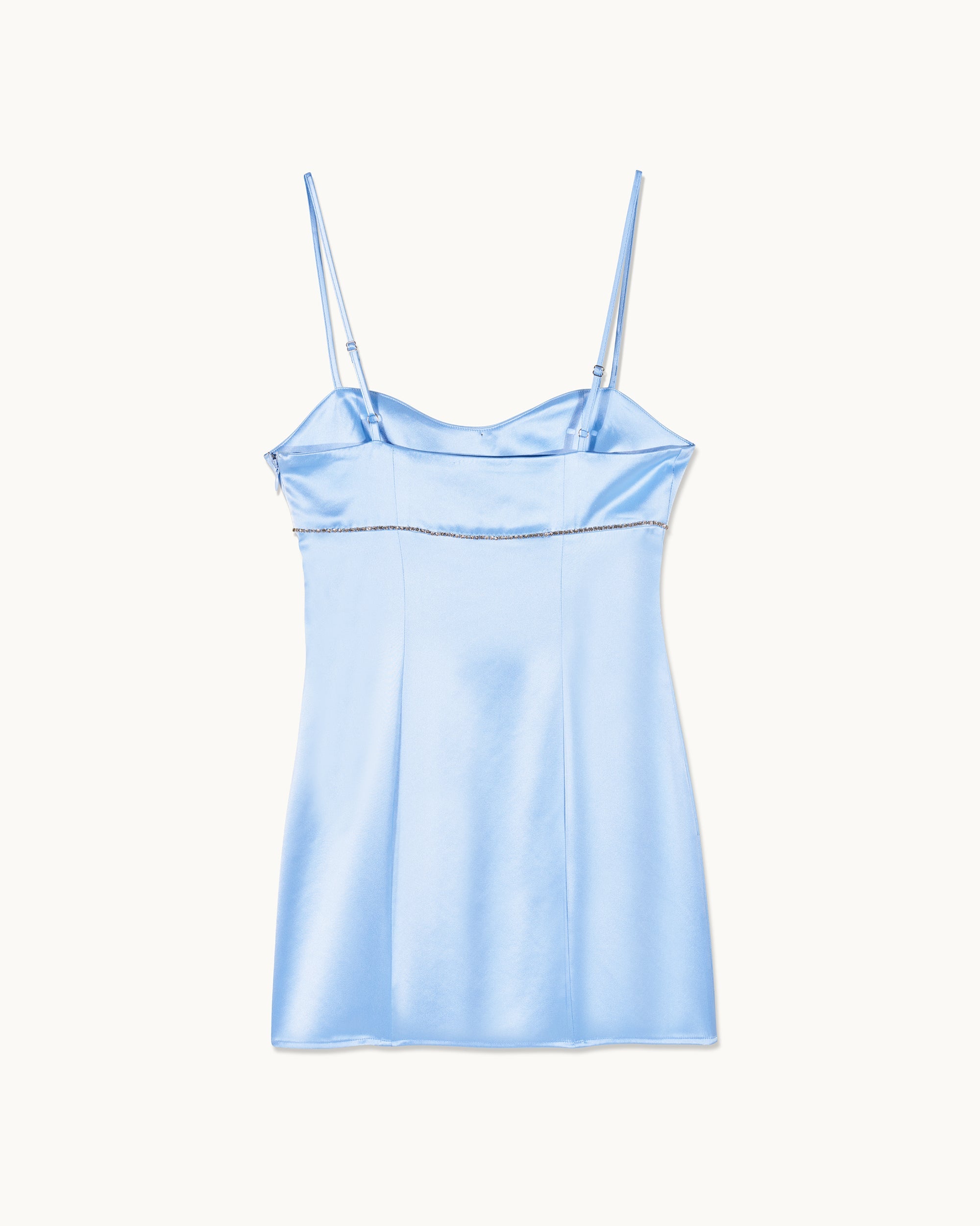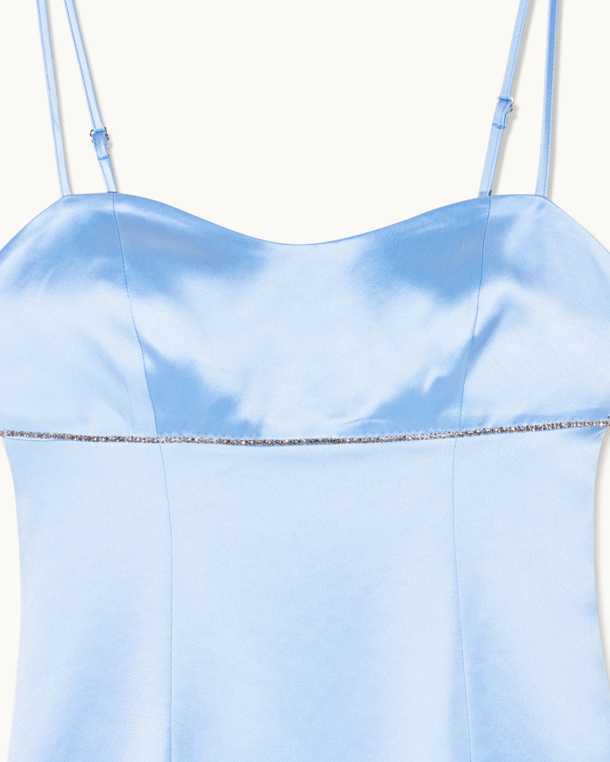 – Sweetheart neckline with cutout and rhinestone-trimmed edges