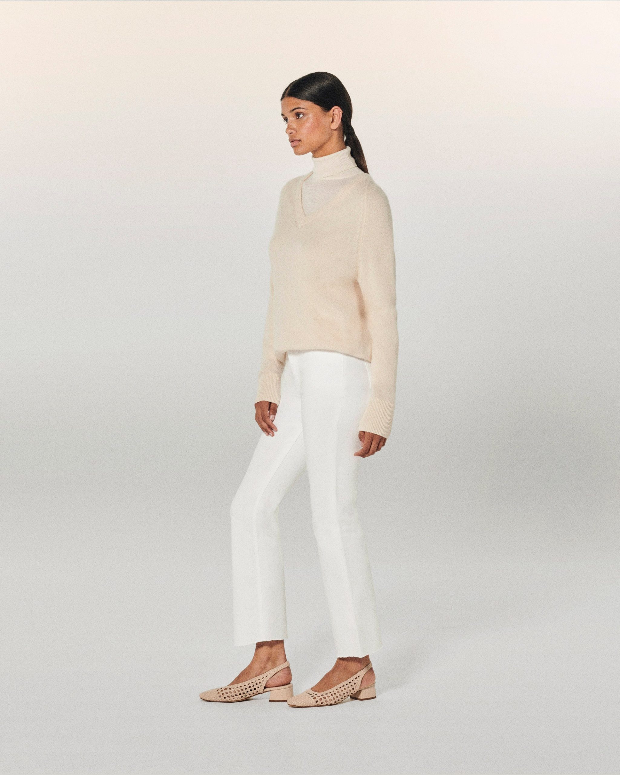 Machine or hand wash. Maximum 30°. Wash inside out and do not mix colours. Standard détergent. No bleach. Dry naturally without spinning. Iron at low temperature. Dry cleaning possible.