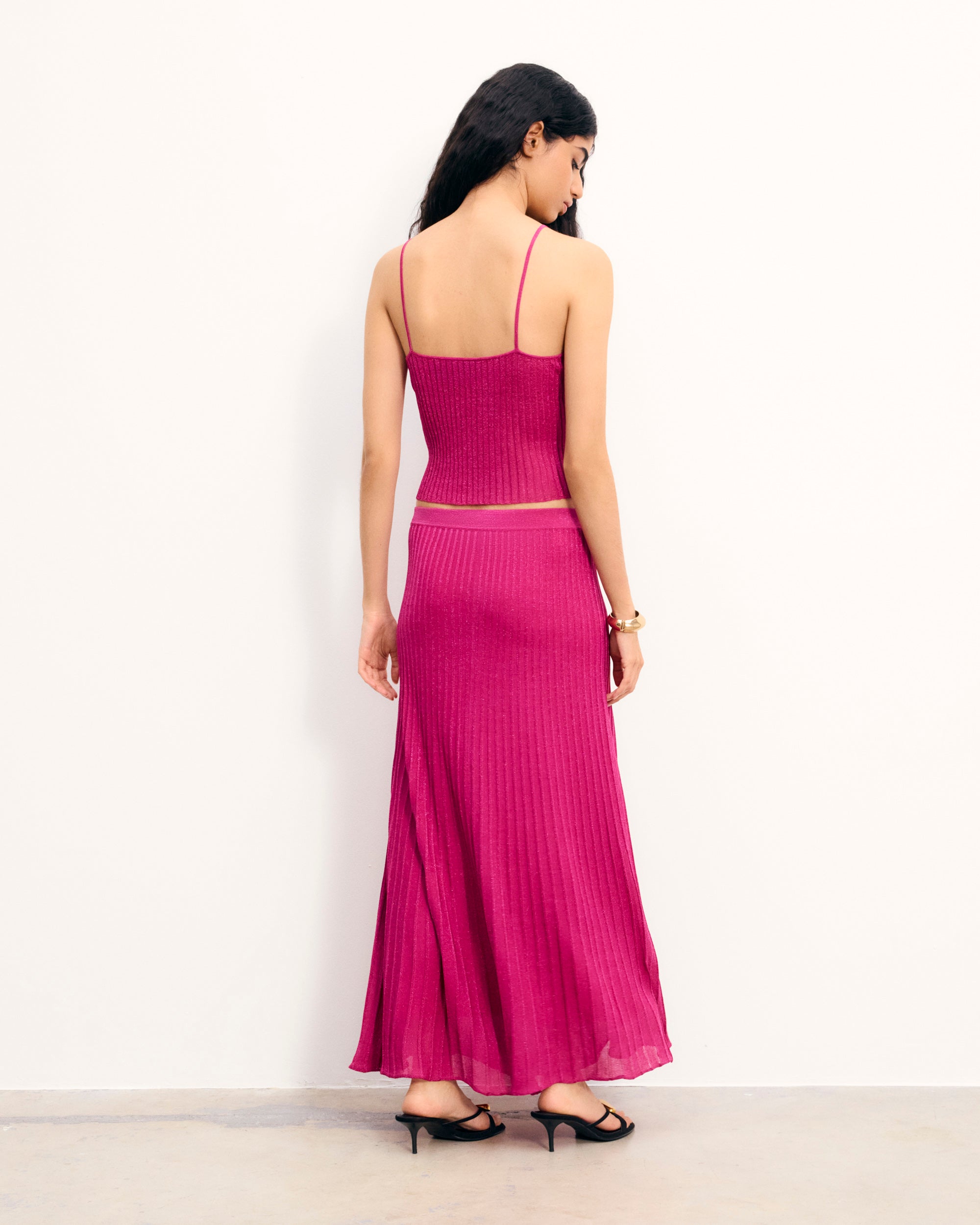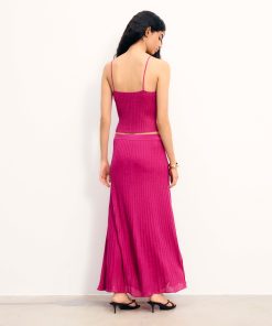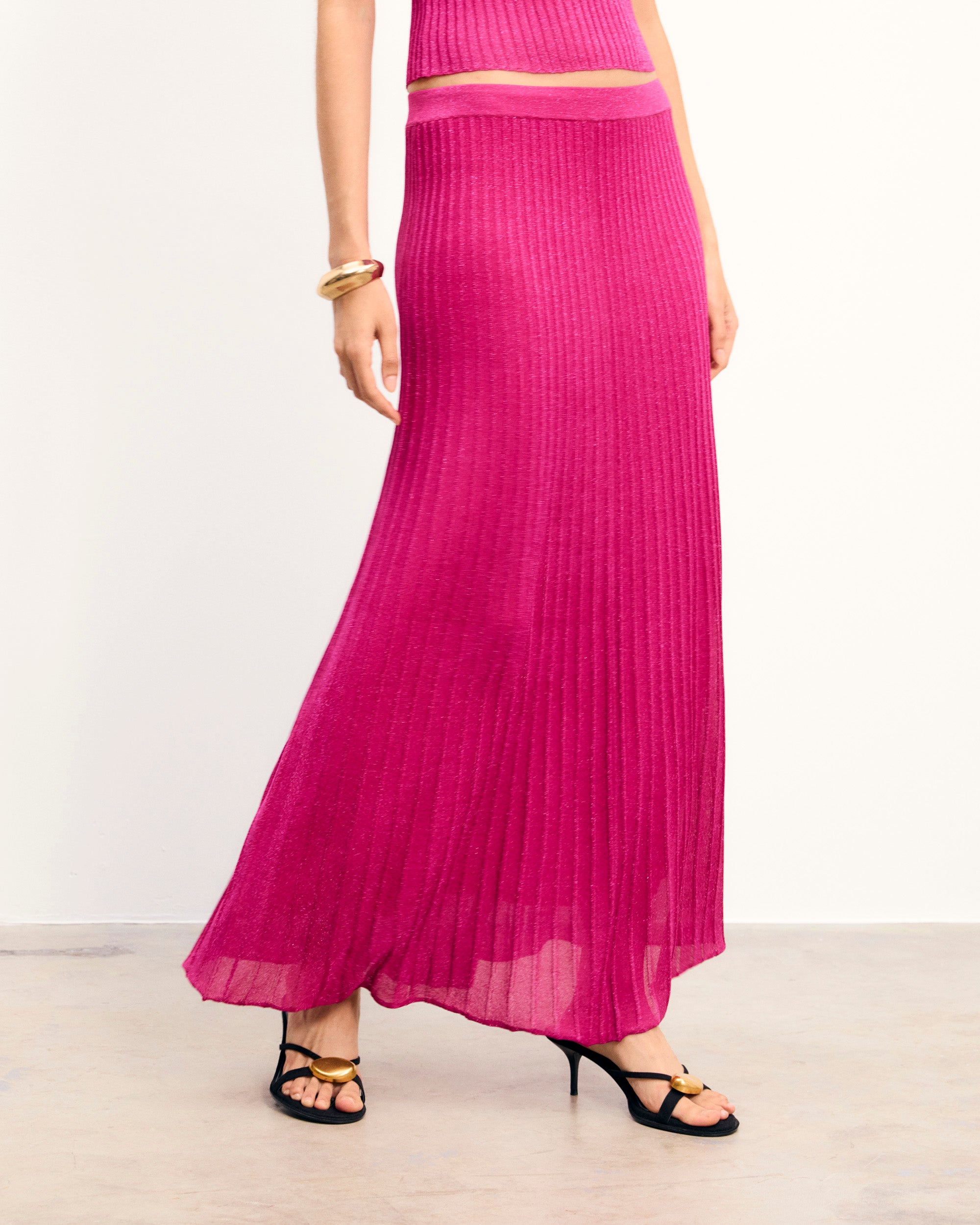 – Women’s 2-ply lurex pleated-effect long skirt