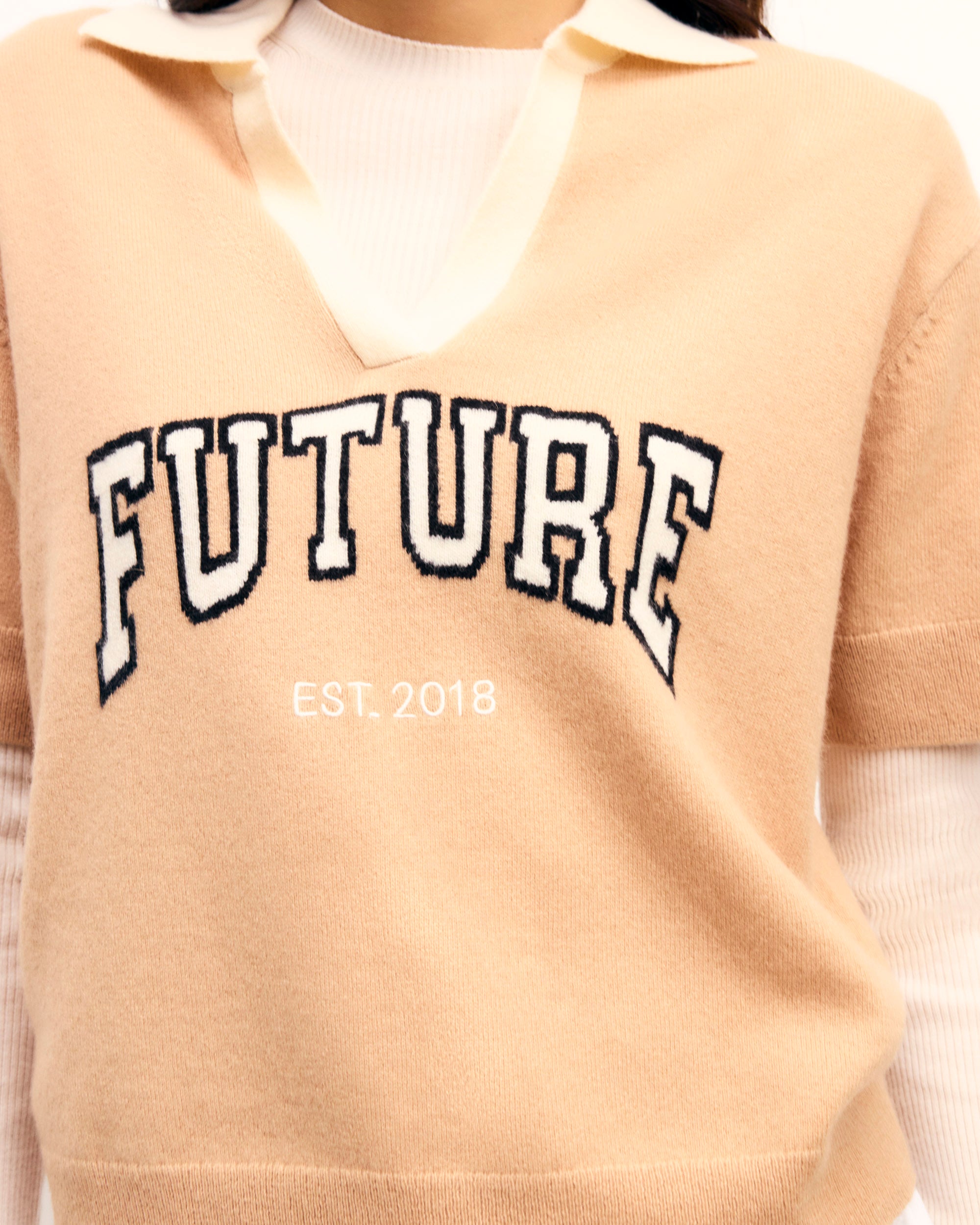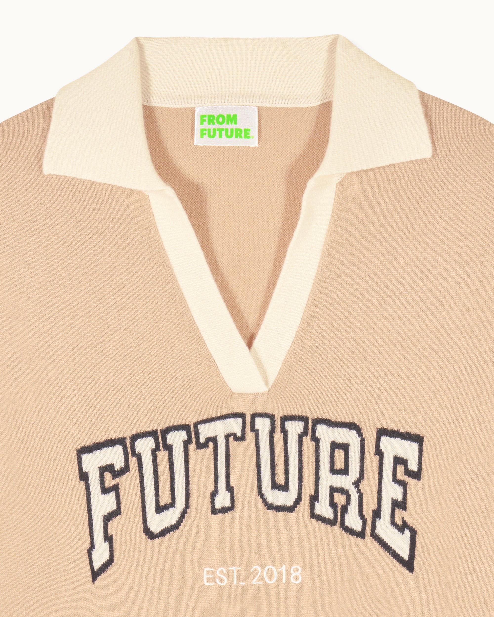 – “Future EST. 2018” intarsia and embroidery signature