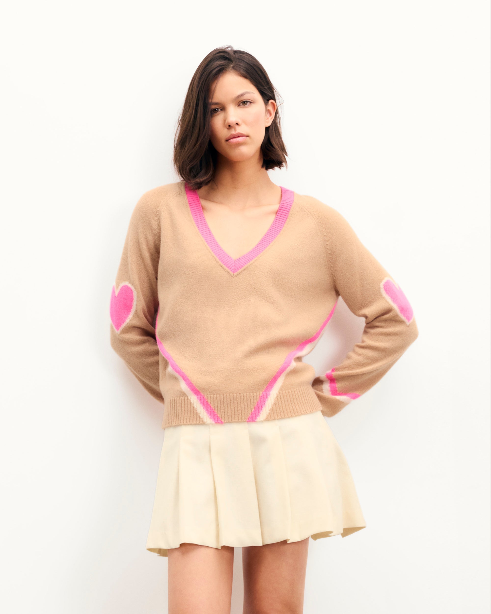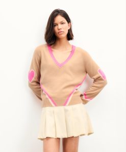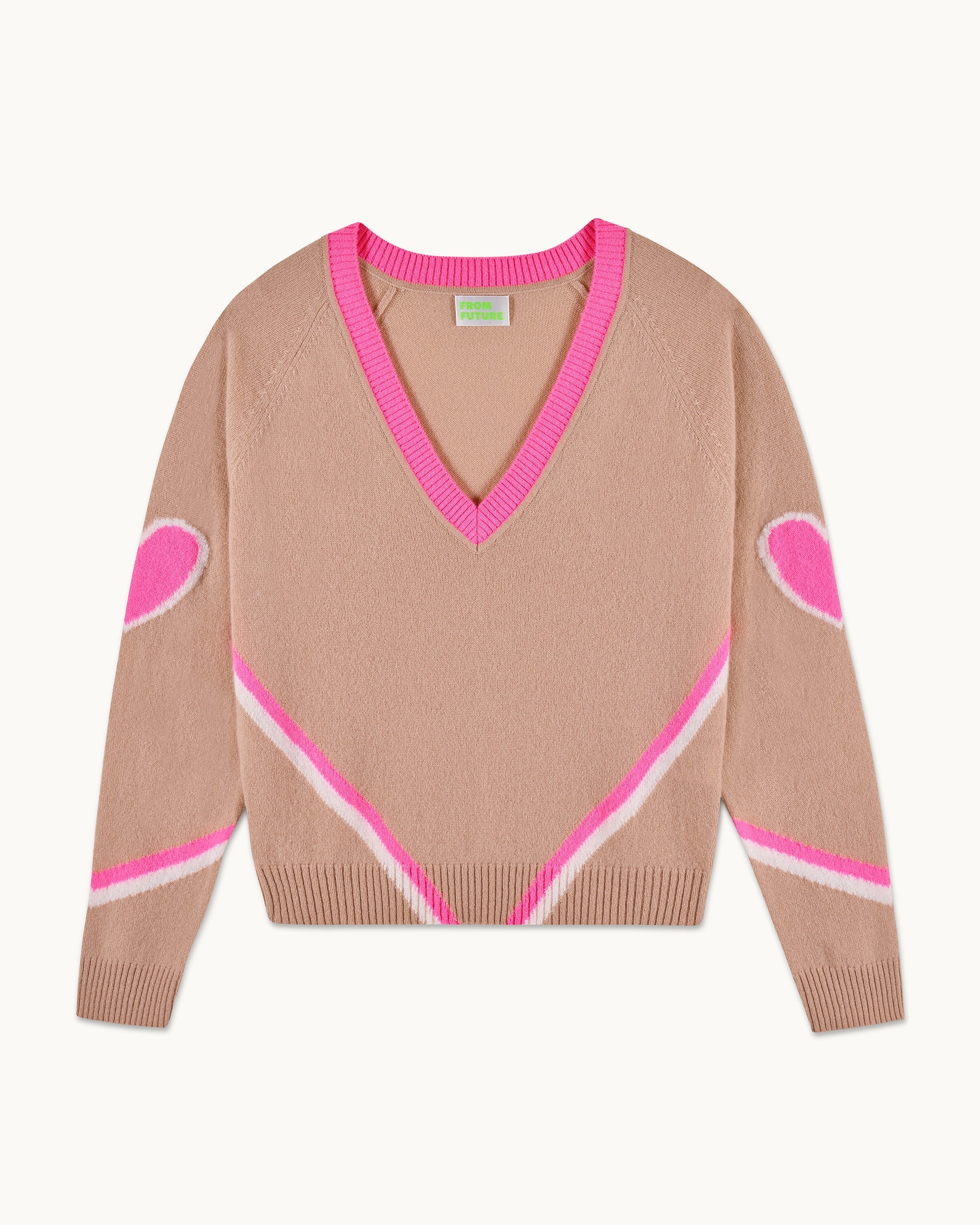 From Future Women’s Tops Hearts And Stripes V-neck Sweater | Tropical Camel
