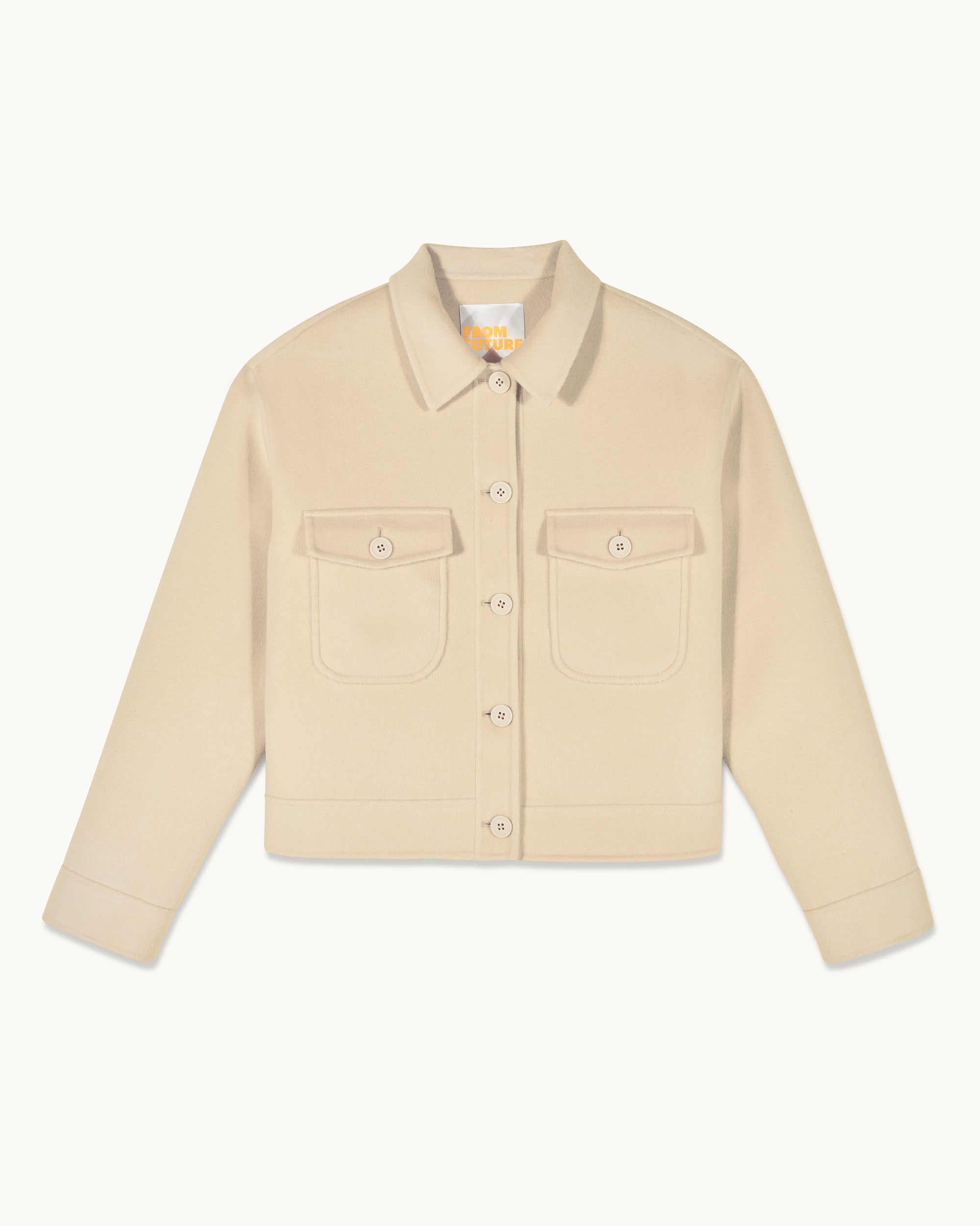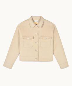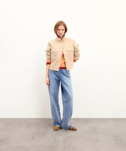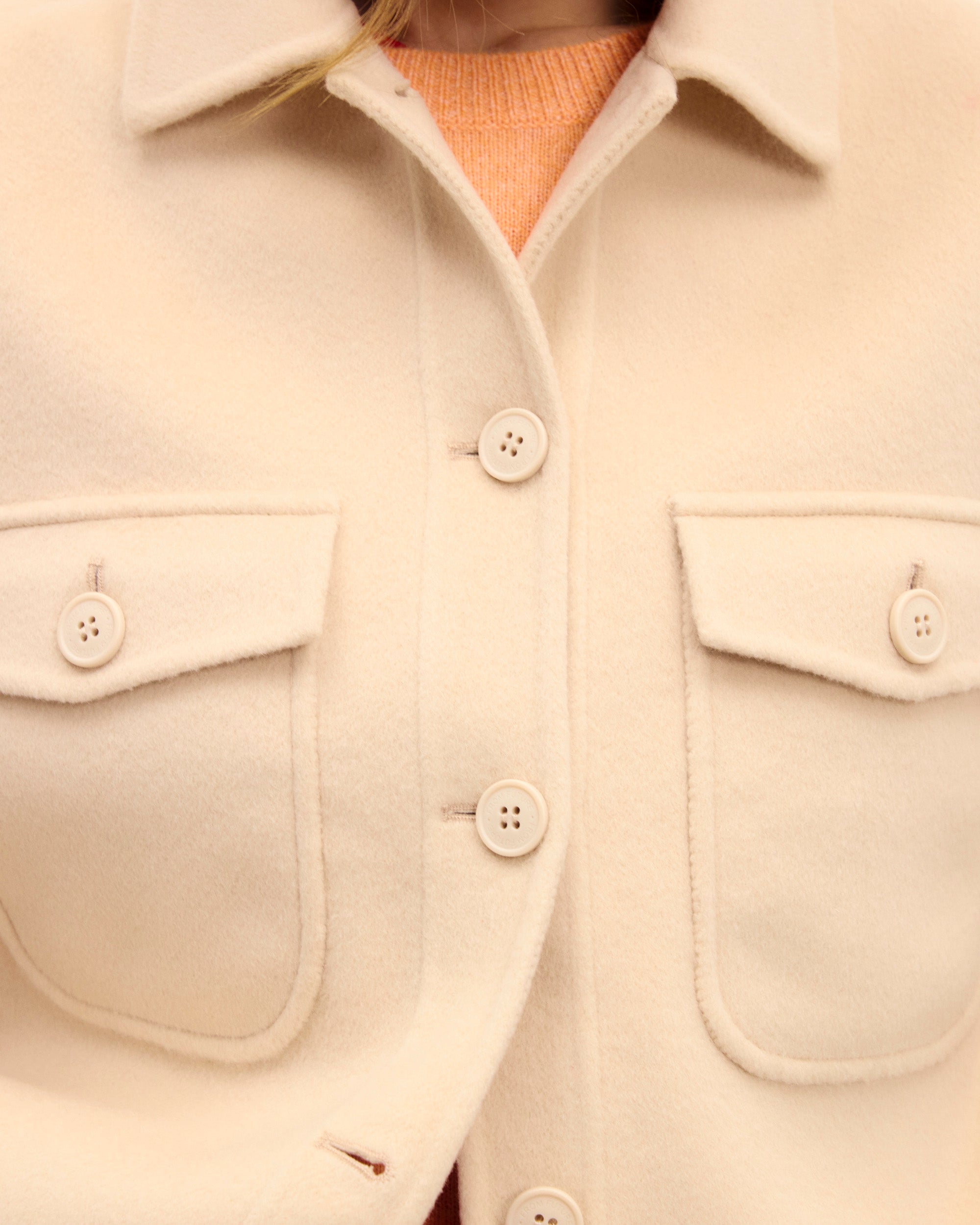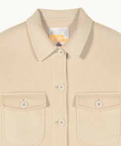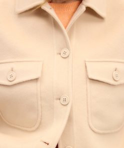 Cozy up in this structured wool jacket. It features a shirt neck, button closure, and two flap pockets for a timeless look. Perfect for layering over your favorite jeans or a dress.