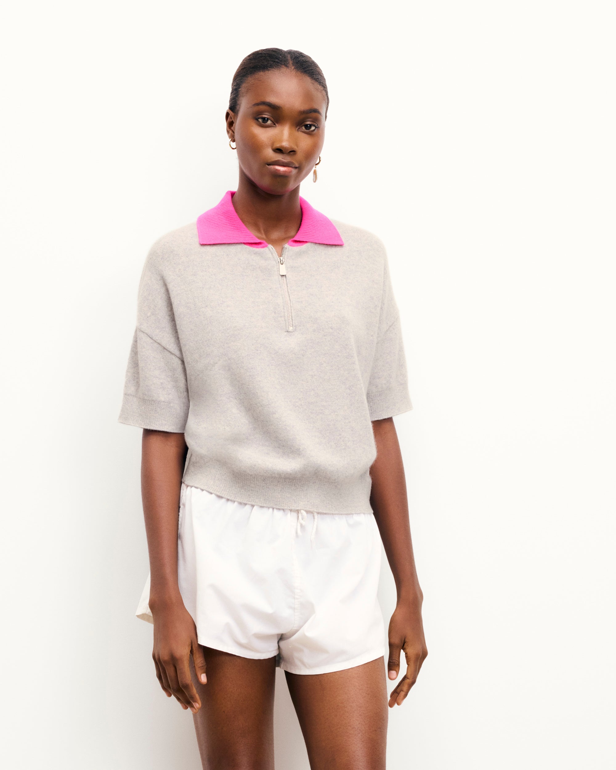 – Contrasting polo neck